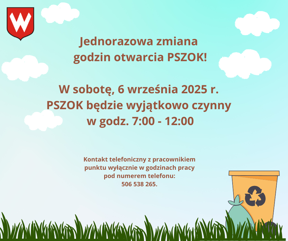 Jednorazowa zmiana godzin otwarcia PSZOK w dniu 6 września 2025