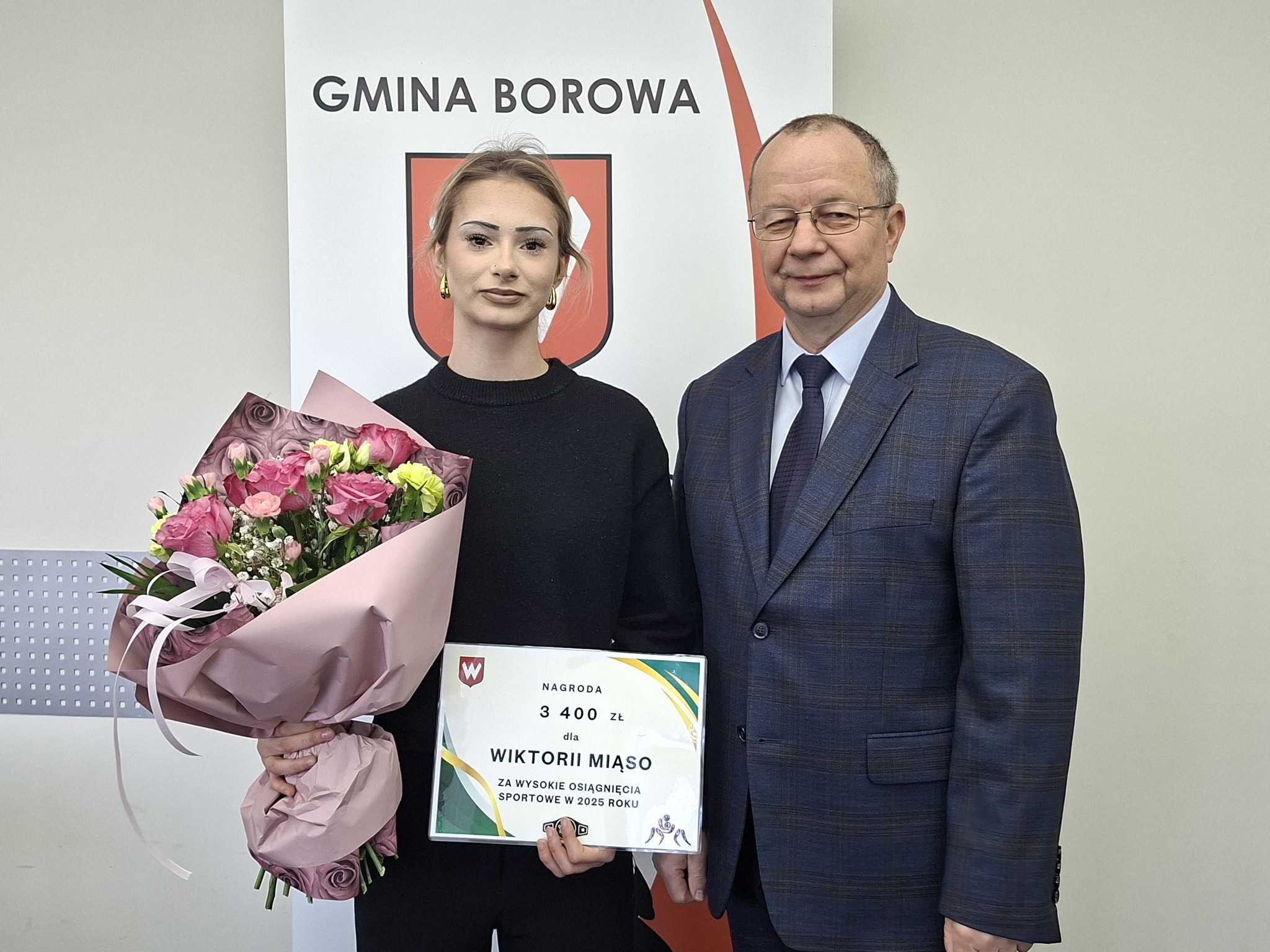 Wójt Gminy Borowa wręczył dziś Wiktorii nagrodę za wysokie wyniki sportowe w 2025 roku, gratulując dotychczasowych osiągnięć.