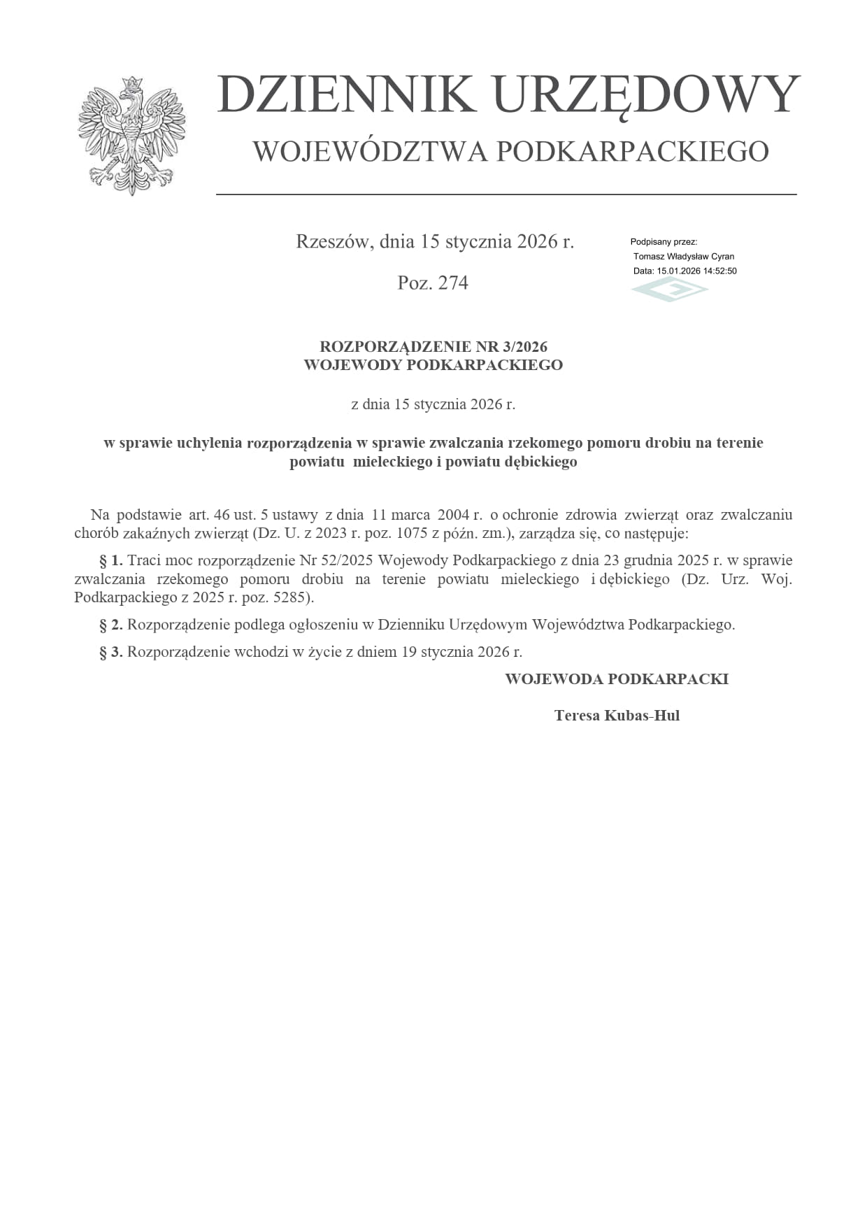 związane ze zwalczaniem rzekomego pomoru drobiu (ND) na terenie powiatu mieleckiego.