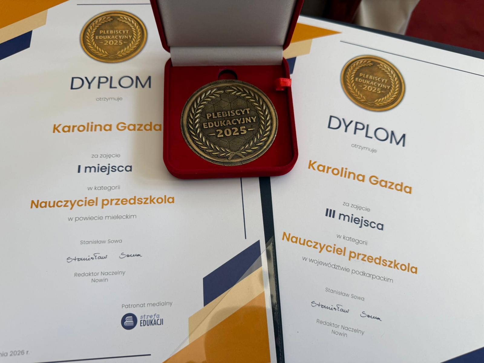 Nagroda ta jest dowodem uznania dla zaangażowania, pasji oraz codziennej pracy wkładanej w wychowanie i edukację najmłodszych. Jesteśmy dumni, że w naszych placówkach pracują tak oddani i inspirujący nauczyciele. Życzymy pani Karolinie dalszych sukcesów zawodowych, niegasnącej energii oraz satysfakcji z wykonywanej pracy!