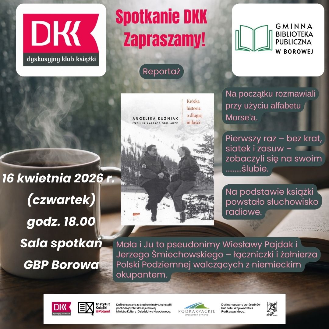 Gminna Biblioteka Publiczna w Borowej zaprasza wszystkich miłośników reportażu na spotkanie z niezwykłymi bohaterami książki Eweliny Karpacz-Oboładze i Angeliki Kuźniak w ramach Dyskusyjnego Klubu Książki.