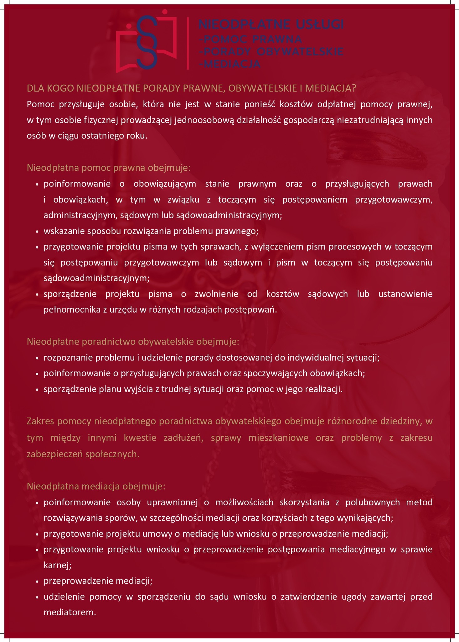 ➢ nieodpłatną mediację