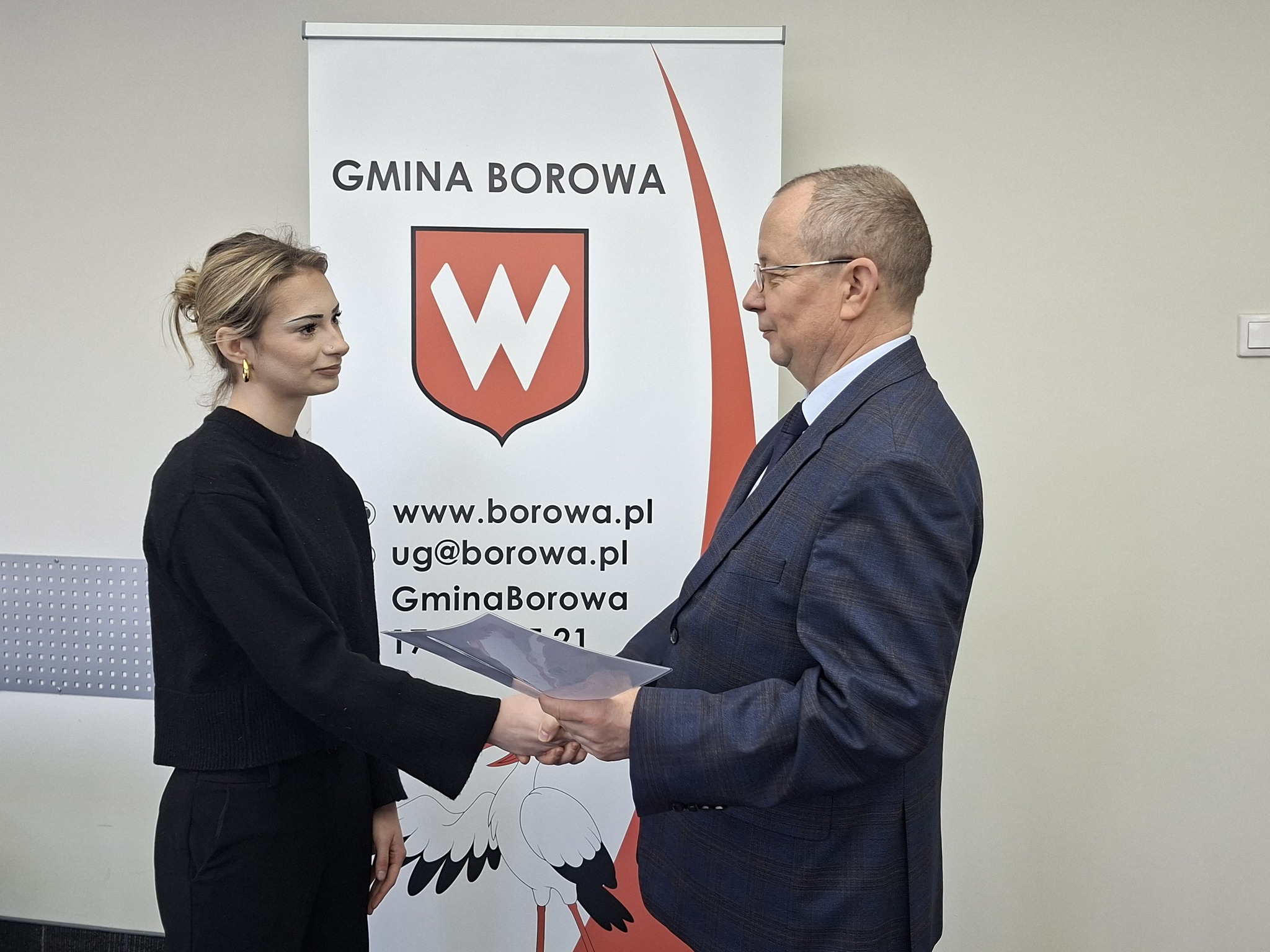 Wójt Gminy Borowa wręczył dziś Wiktorii nagrodę za wysokie wyniki sportowe w 2025 roku, gratulując dotychczasowych osiągnięć.