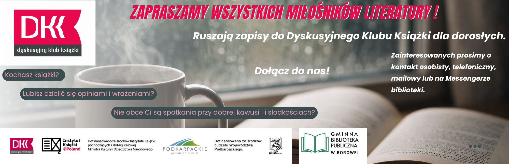 Mamy przyjemność zaprosić wszystkich miłośników książek do borowskiego Dyskusyjnego Klubu Książek.